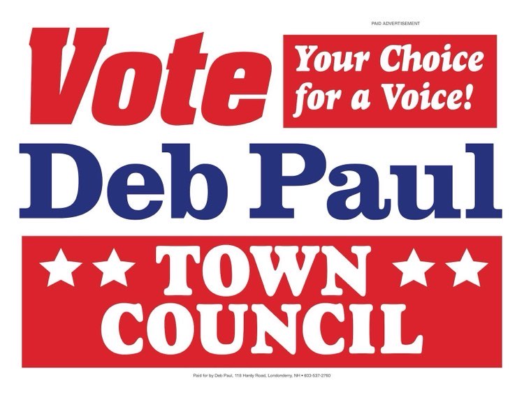 I respectfully ask residents to cast their vote for change and common sense on March 11. Please vote for Deb Paul for Town Council.