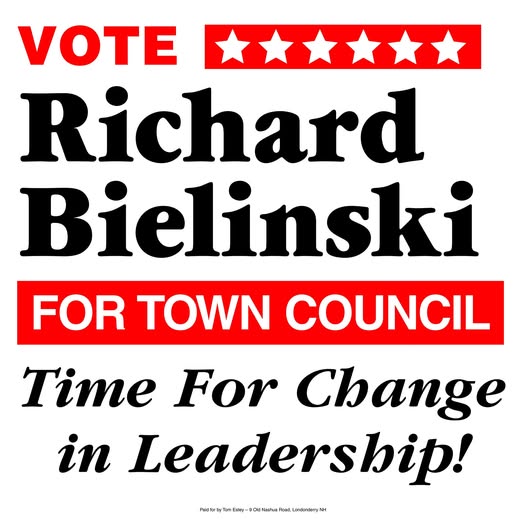 Submitted by Richard D Bielinski Jr candidate for Town Council
