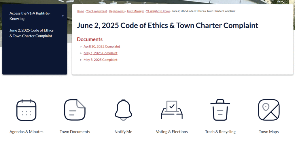 Code of Ethics & Town Charter Complaints filed by former Town Councilor John Farrell against Councilor Deb Paul.