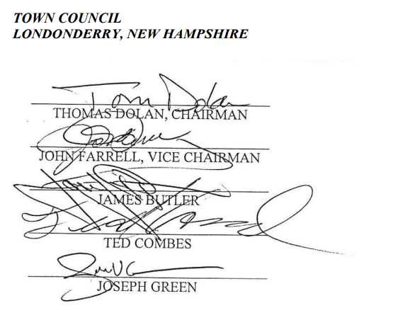 Since the signature are somewhat illegible I pulled the Town Councilor in office from the Town of Londonderry 2017 Annual Report