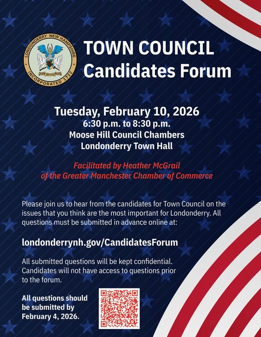 Please join us to hear from the candidates for Town Council on the issues that you think are the most important for Londonderry.