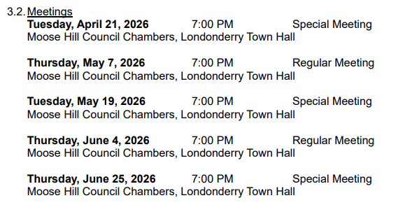 2026, at 7:00 PM in the Moose Hill Council Chambers at Londonderry Town Hall,