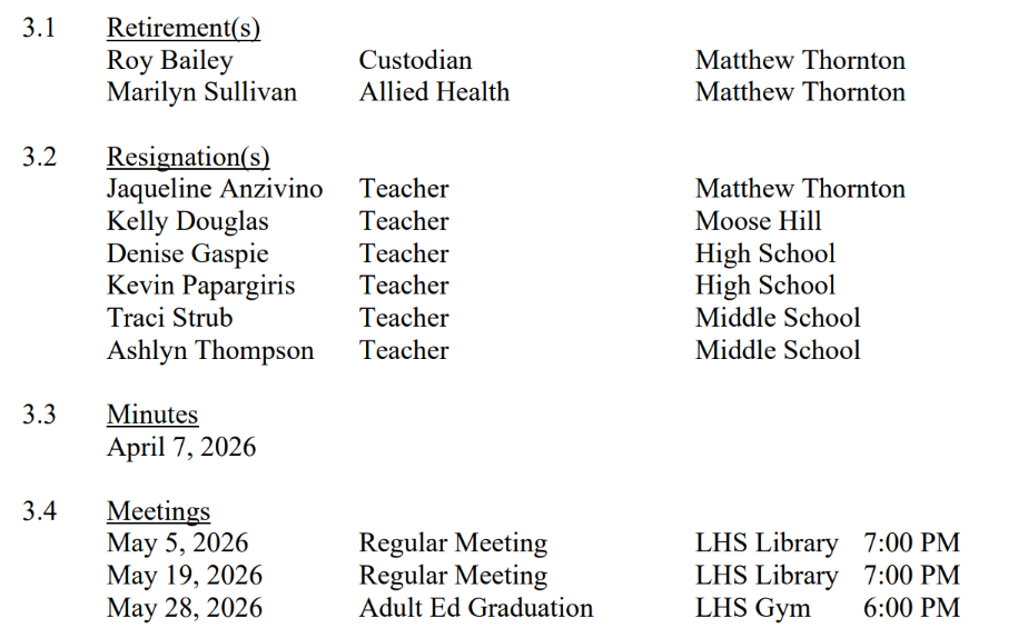 The meeting of the Londonderry School Board will be held on Tuesday, April 21, 2026, at 7:00