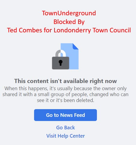 This is a first. The campaign Facebook page for ‘Ted Combes for Londonderry Town Council‘ has blocked the TownUnderground from viewing the page.