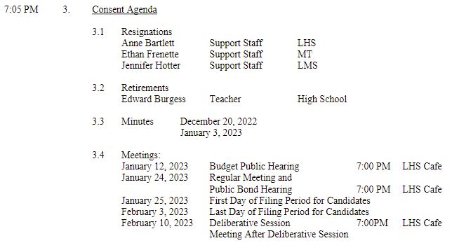 The meeting of the Londonderry School Board will be held on Tuesday, January 3, 2023, at 7:00PM at the Londonderry High School, 295 Mammoth Road, Londonderry, NH in the LHS Cafeteria. The meeting will be broadcast on local Cable Access Ch. 21 as well as the District’s YouTube Channel.