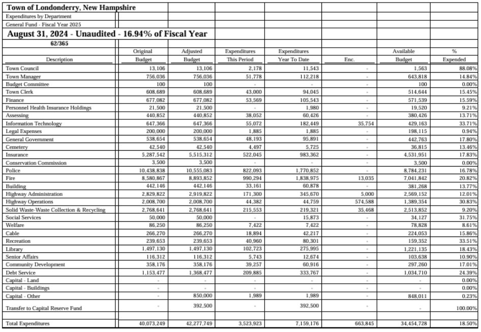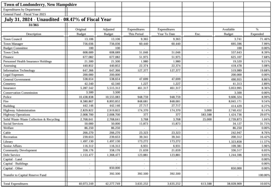 Below is the unaudited 2025 fiscal report for July through September 2024